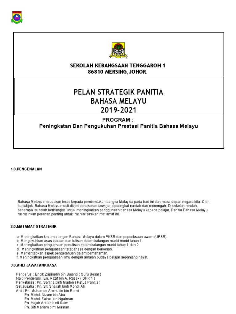 Doc Pelan Strategik Panitia Bahasa Melayu Azman Razak Academia Edu
