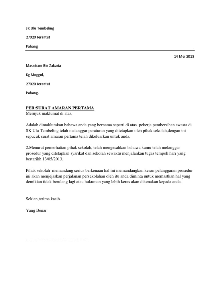 . Dengan surat lamaran ini saya mengajukan permohonan kerja di perusahaan yang BapakIbu pimpin untuk menempati posisi sebagai posisi Digital Marketing. Jika anda masih melihat corak selepas menyatakan rasa tidak puas hati anda penting untuk mengingati percubaan sebelum ini dan memastikan pekerja memahami mengapa ia ditulis secara rasmi. They are so many great picture list that may become your inspiration and informational reason for Contoh Surat Amaran Tatatertib design ideas for your own collections.